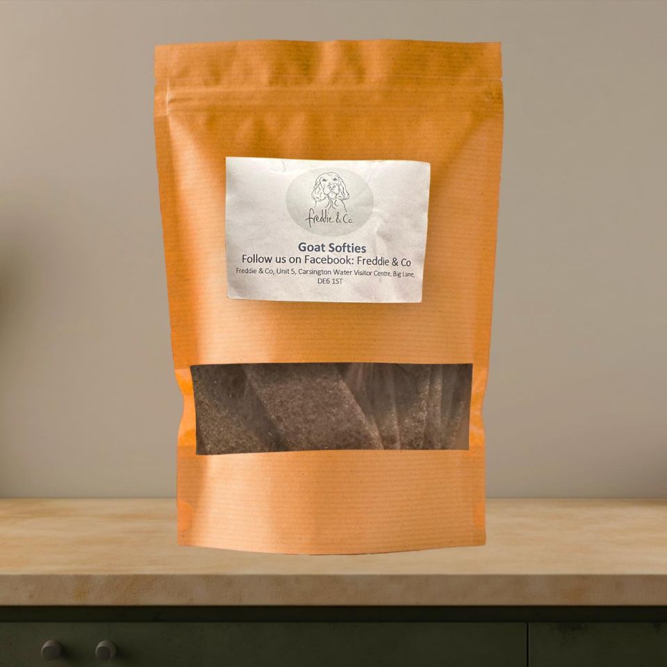 Freddie & Co’s new goat softies are just like our jerky sticks only these are flat and soft too. Our high protein goat treat are suitable for all breeds and puppies from 8+ weeks and can be fed whole or broken up into smaller strip pieces. Alternative to lamb & sheep, our goat meat with have your pooches baa-rking mad for these. Comes in a bag of 200g. (Approx. 20 soft strips)
